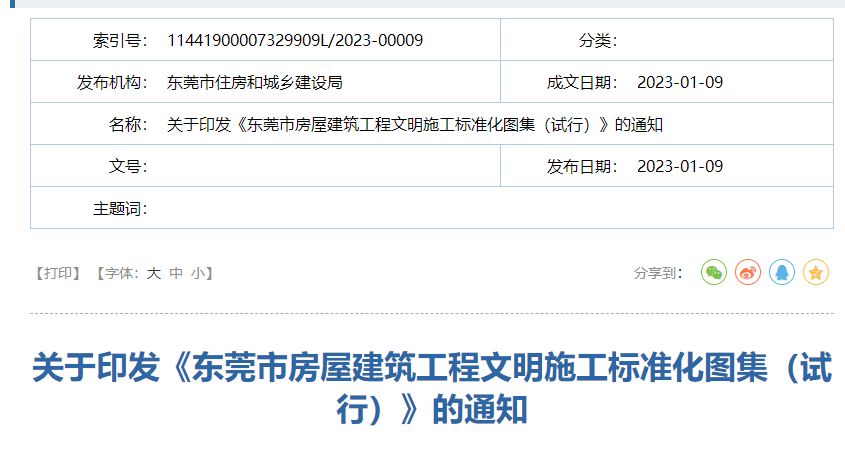 關(guān)于印發(fā)《東莞市房屋建筑工程文明施工標(biāo)準(zhǔn)化圖集(試行)》的通知發(fā)布日期:2023-01-09 瀏覽...