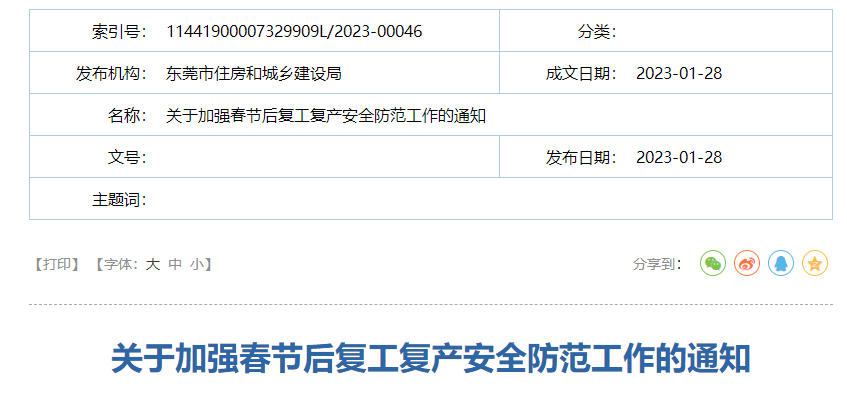 關(guān)于加強(qiáng)春節(jié)后復(fù)工復(fù)產(chǎn)安全防范工作的通知各鎮(zhèn)街(園區(qū))住房和城鄉(xiāng)建設(shè)局、房地產(chǎn)管理所,各有關(guān)單位: ...
