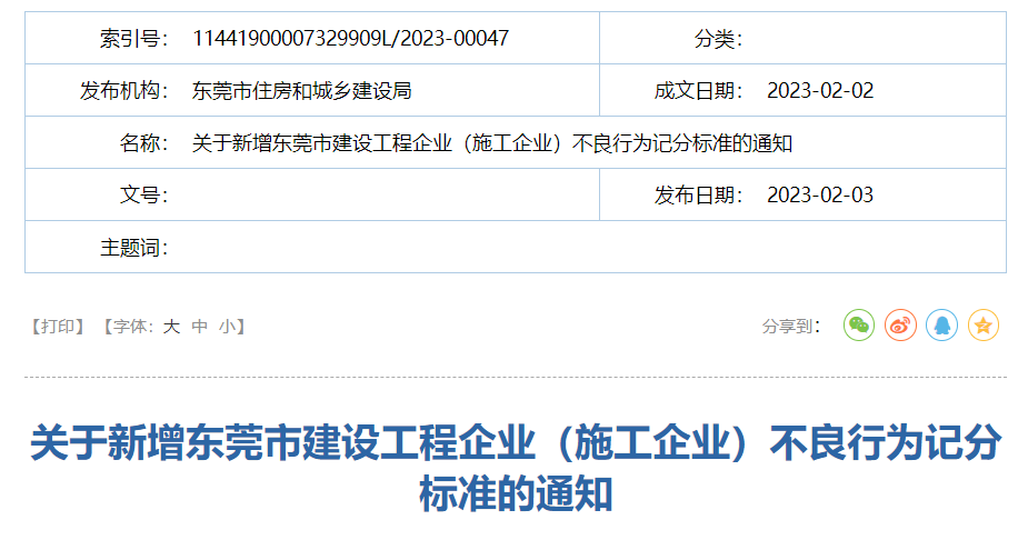 關(guān)于新增東莞市建設(shè)工程企業(yè)(施工企業(yè))不良行為記分標(biāo)準(zhǔn)的通知各園區(qū)(鎮(zhèn)街)住房城鄉(xiāng)建設(shè)主管部門,各有...