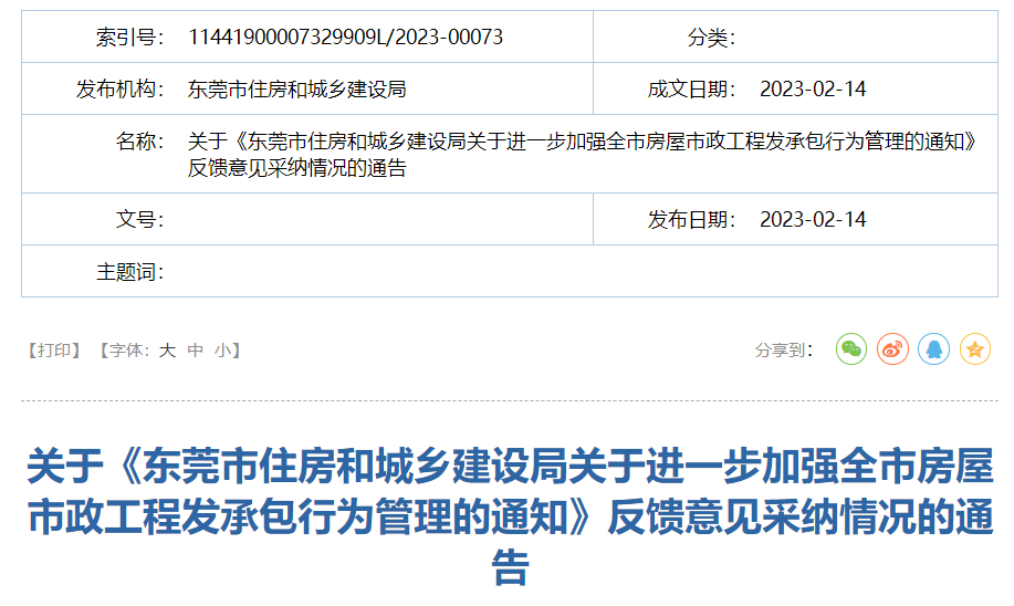 關(guān)于《東莞市住房和城鄉(xiāng)建設(shè)局關(guān)于進(jìn)一步加強(qiáng)全市房屋市政工程發(fā)承包行為管理的通知》反饋意見采納情況的通...